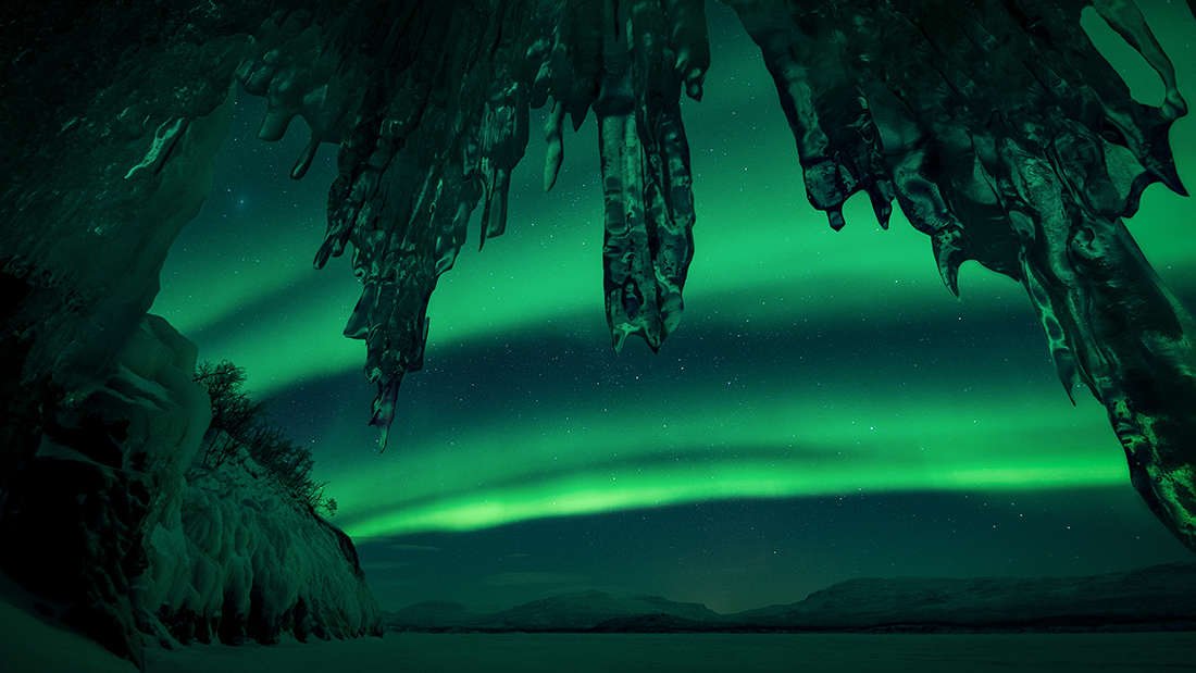 Fotoğraf, İsveç’in Lappland ilinde yer alan Torneträsk Gölü’ndeki bir mağaradan çekilmiş.